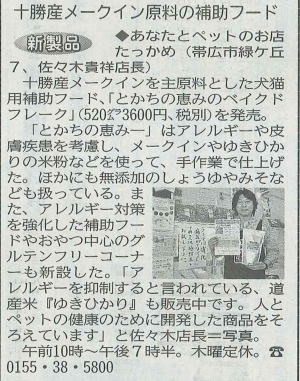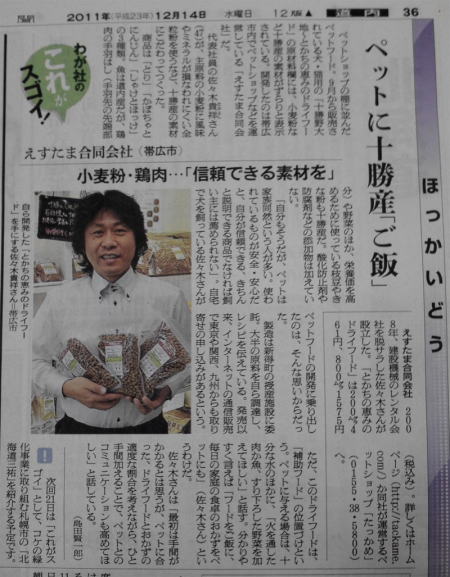 | 2011年9月29日北海道新聞経済面 | 2011年9月27日十勝毎日新聞 | 2011年12月14日朝日新聞北海道版 |