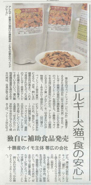 | 2014年9月6日 十勝野大地のグルテンフリー補助フード『とかちの恵みのベイクドフレーク』が紹介されました♪ | |